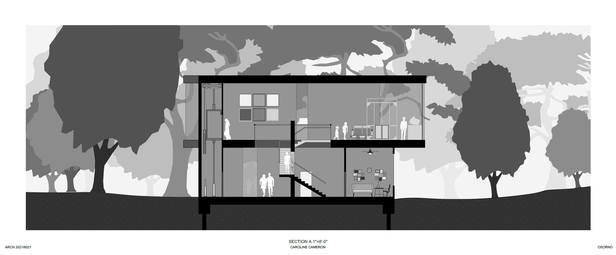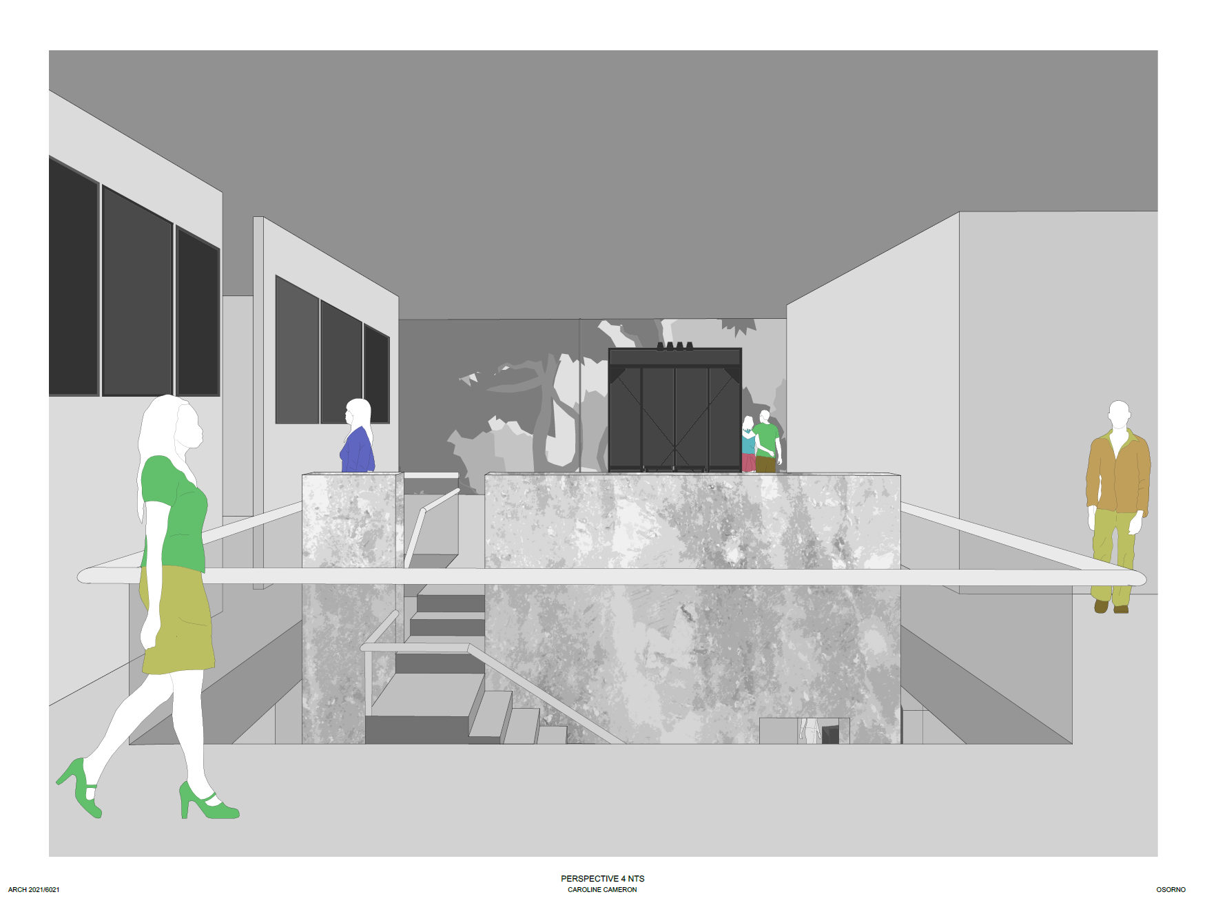 For the architectural aspect of the project, we were tasked with designing a visitor’s center for the historical site that could be placed in three different areas. I chose to focus my design near the water, incorporating it to highlight the unique history of the lake, shaped by the mining disaster. Additionally, I integrated the remnants of the pier that once served as the loading dock in the historical mine layout. The visitor center features a salt wall, mining cage, cafe, and viewing deck in an organic design inspired by the surrounding nature.